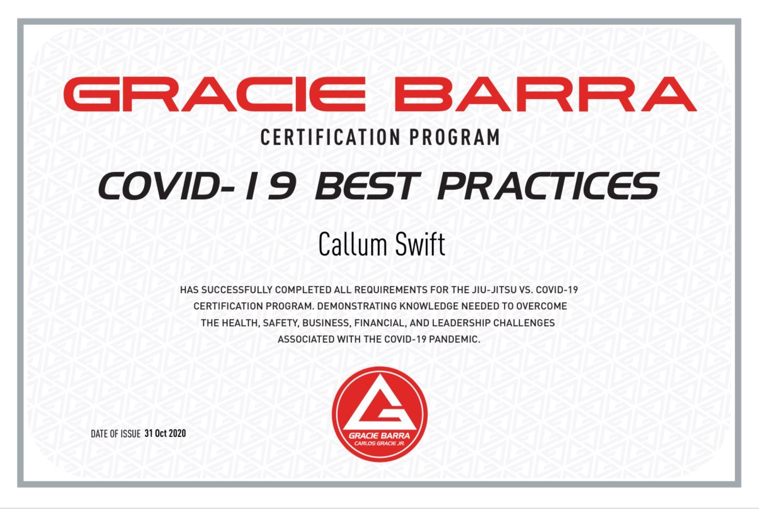 Promoted to Black belt in 2021, Coach Cal has received all of his belt promotion under a Gracie Barra Lineage, and is now under the leadership of World Champion Professor Victor Estima (Regional Director of Gracie Barra Europe). is a fully certified Brazilian Jiu-Jitsu instructor, having completed the Latest Instructors Certification Program (ICP) as required by all Gracie Barra Coaches, Instructors and Professors.