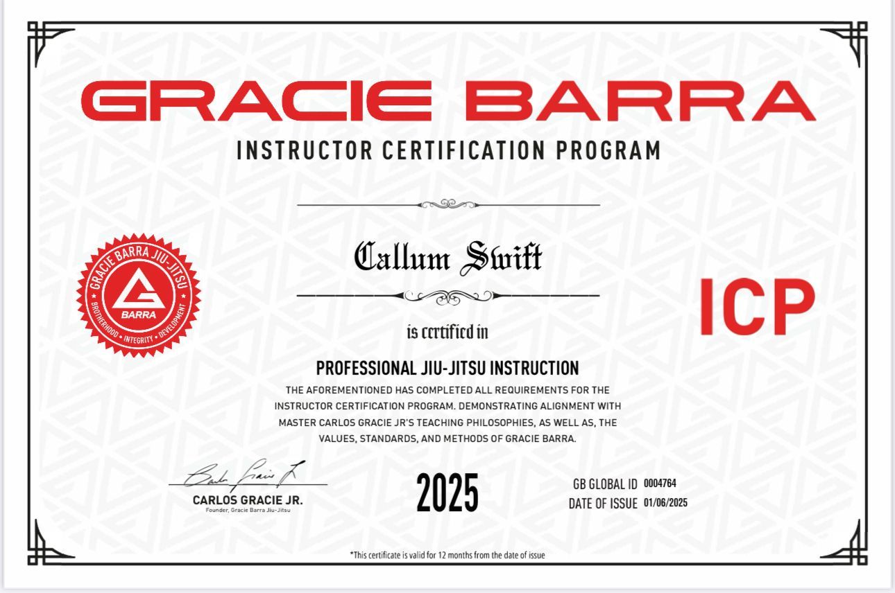 Professor Callum Swift (or Coach Cal as he prefers to be known) is a Brazilian Jiu-Jitsu Black Belt & head instructor of Gracie Barra Frome.